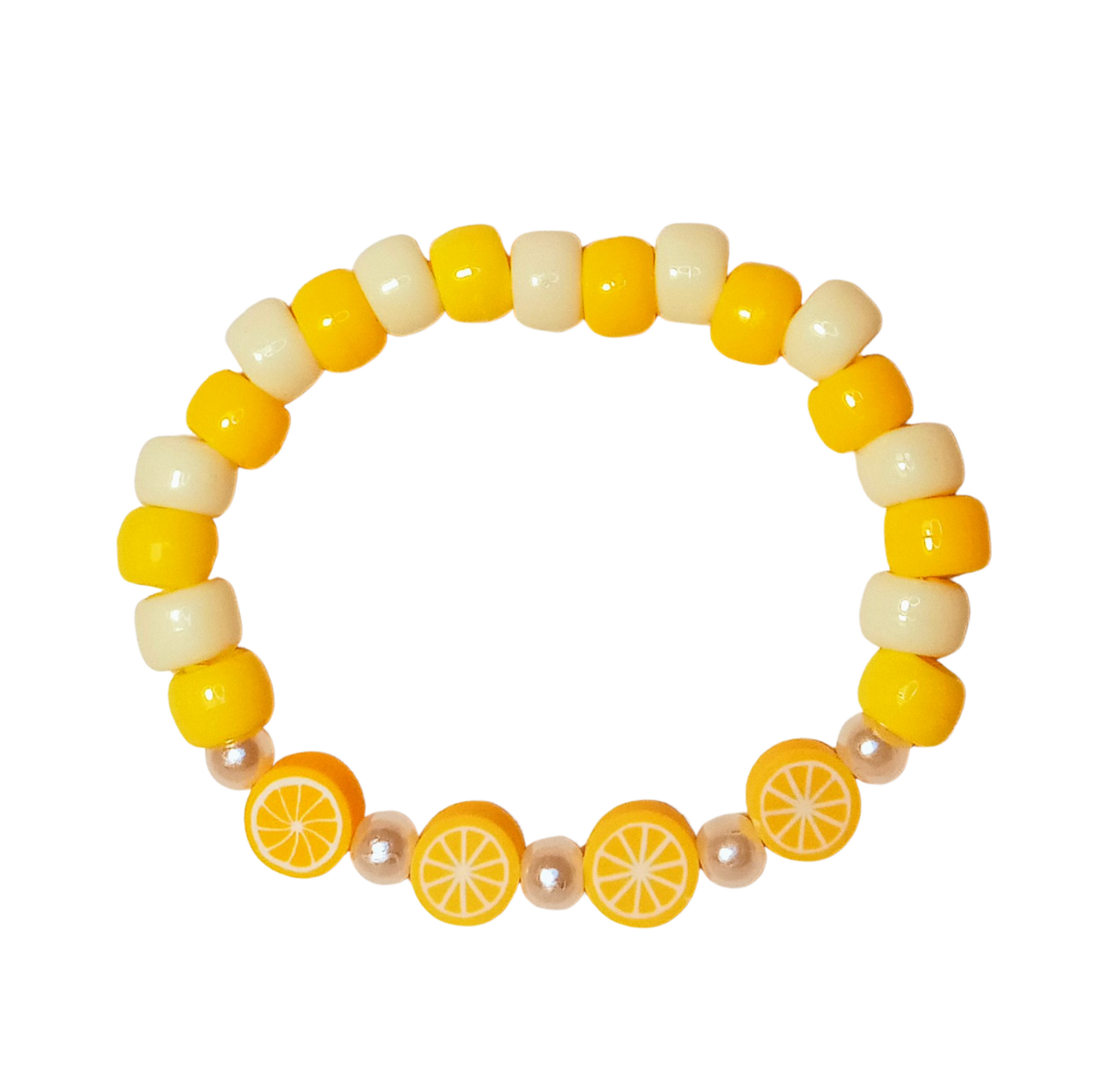 Lemonade Beaded Bracelet with Lemon Charms and Pearl accent.