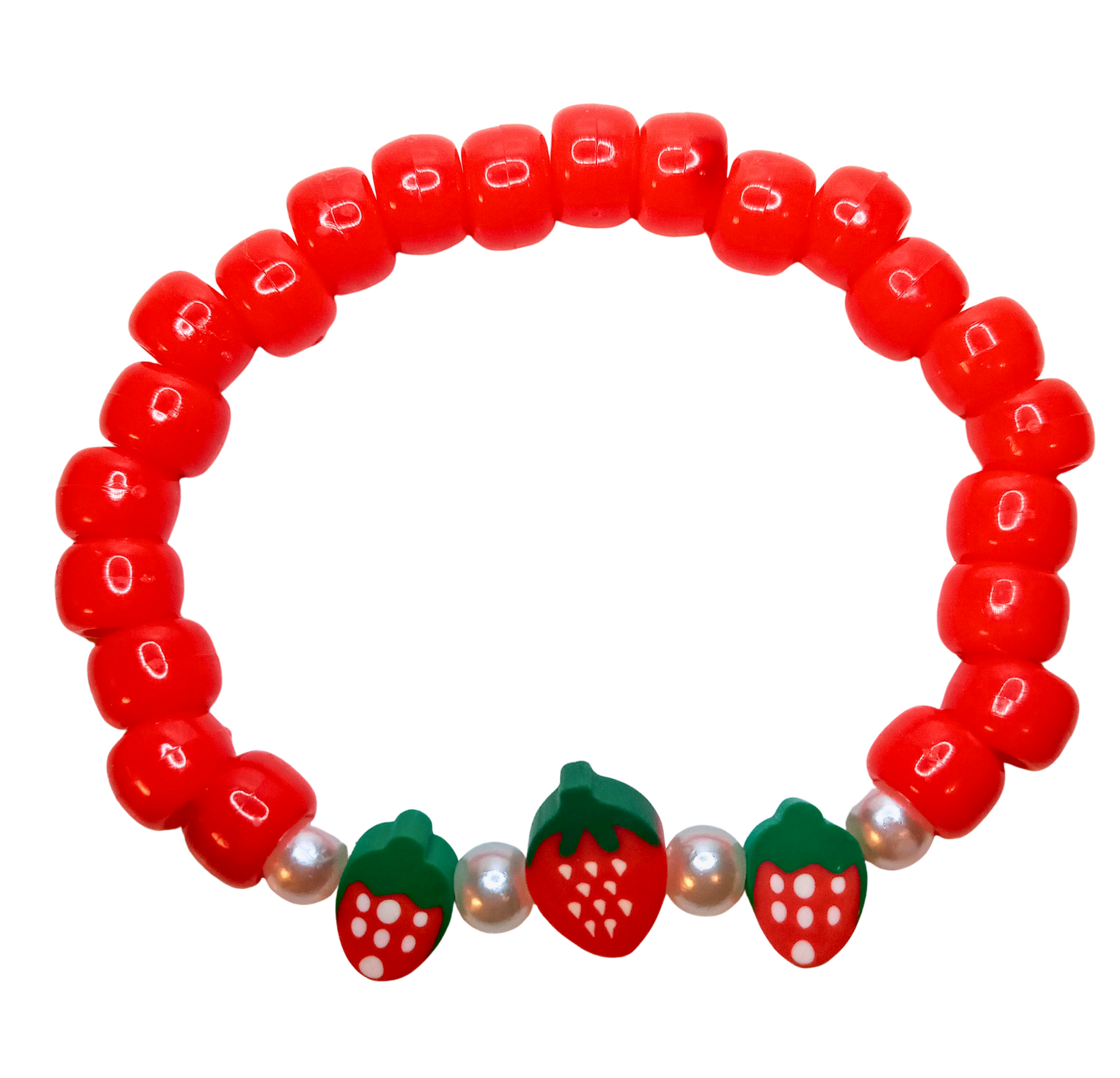 Add a sweet touch to your look with this playful Red stretchy beaded bracelet, featuring charming strawberry accents and delicate pearls. Its stretchy design ensures a comfy fit, making it perfect for everyday fun and a pop of fruity flair. | MadebyHuff